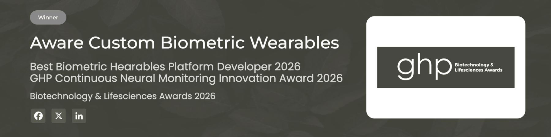 Aware is building the first biometric system engineered to capture brain and body signals under real-world physiological and psychological stress, creating a new class of high-fidelity health data purpose-built for AI-native diagnostics and performance insights. The ear provides a stable and exclusive gateway for continuous monitoring of both neurological and physiological signals — delivering accuracy and access no other wearable can match. Our privacy-forward, de-identified data model reflects a commitment to responsible innovation, aligning with the highest standards in security, consent, and ethical biometric data use. By pairing ear-based insights with existing wearables, researchers and end users gain a more complete, high-fidelity picture of health and performance, purpose-built for AI-native diagnostics.